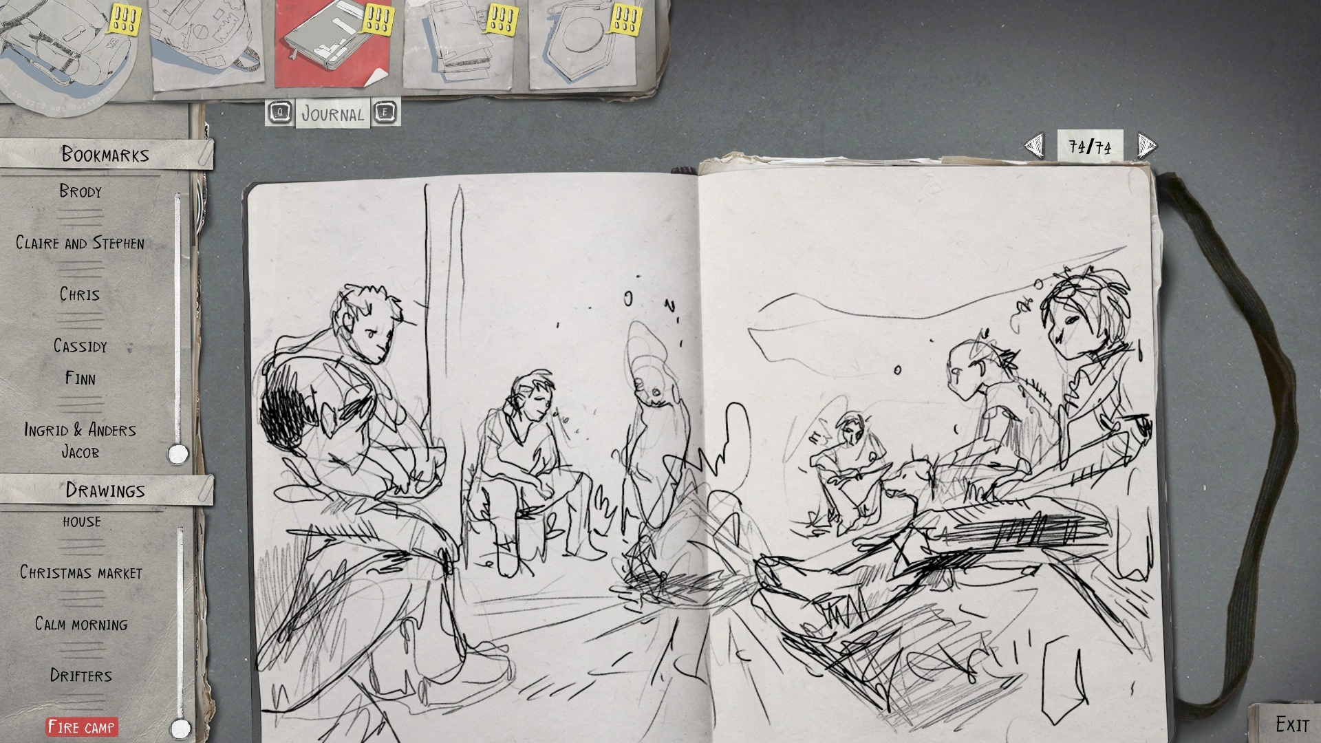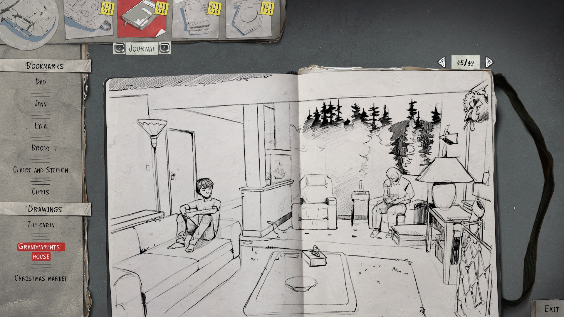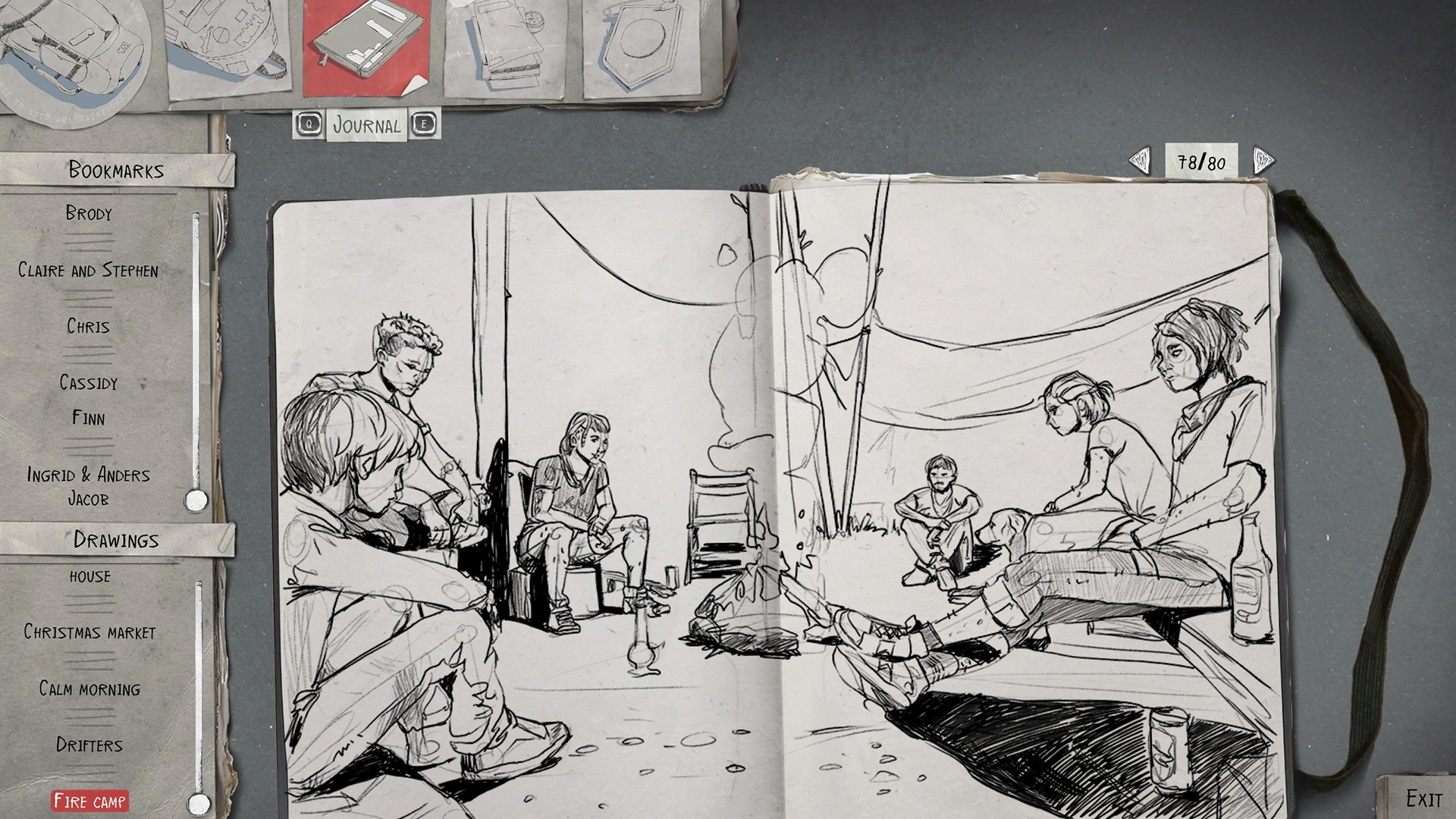 Optional Drawings are a gameplay mechanic in Life is Strange 2. Throughout each episode, Sean may encounter multiple locations where he may sit and draw pictures to varying levels of details using his sketchbook. Completion of a drawing will result in the sketch being saved to Sean's journal pages, and starting any drawing at least once throughout an episode awards the player with an achievement.