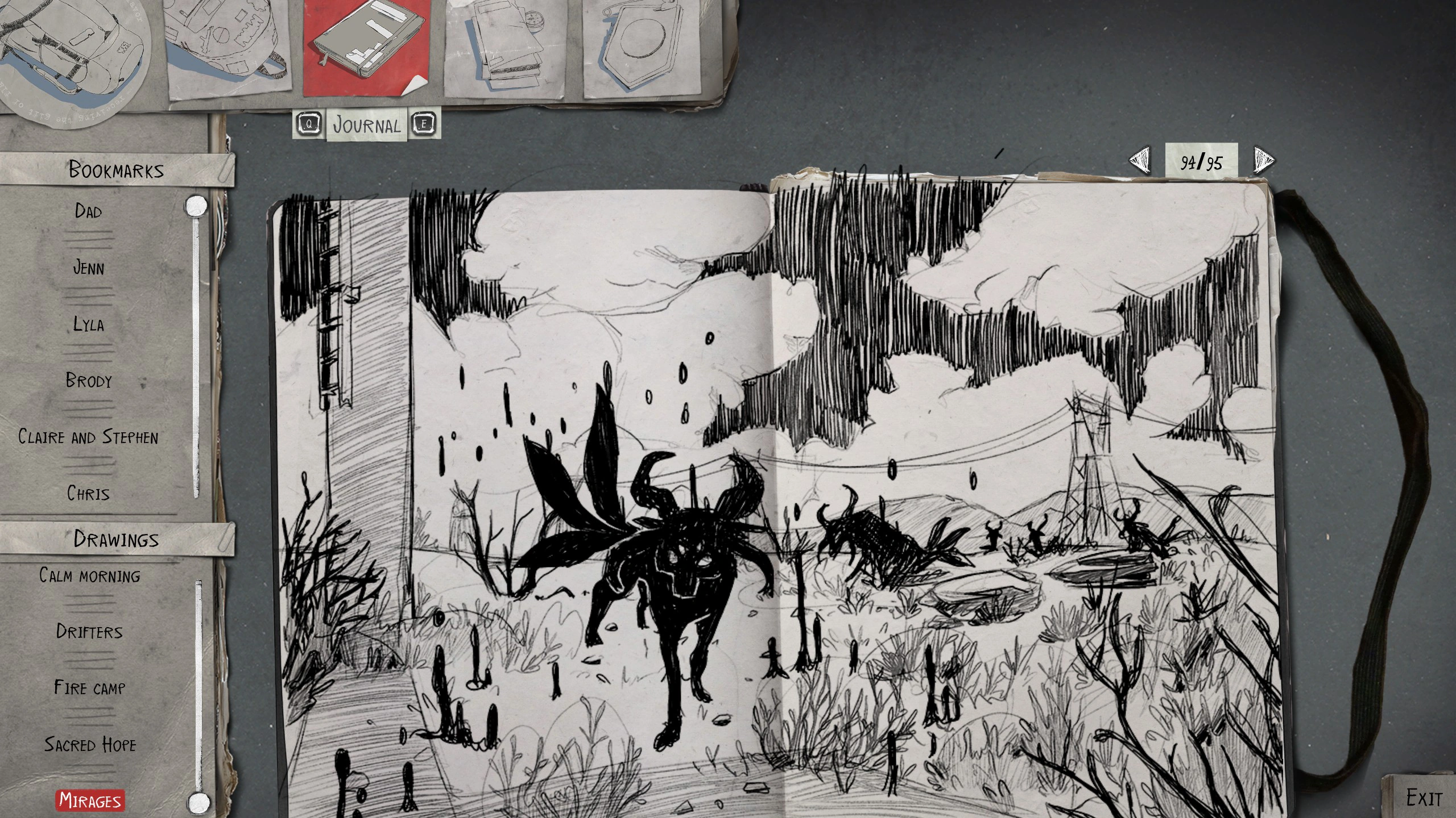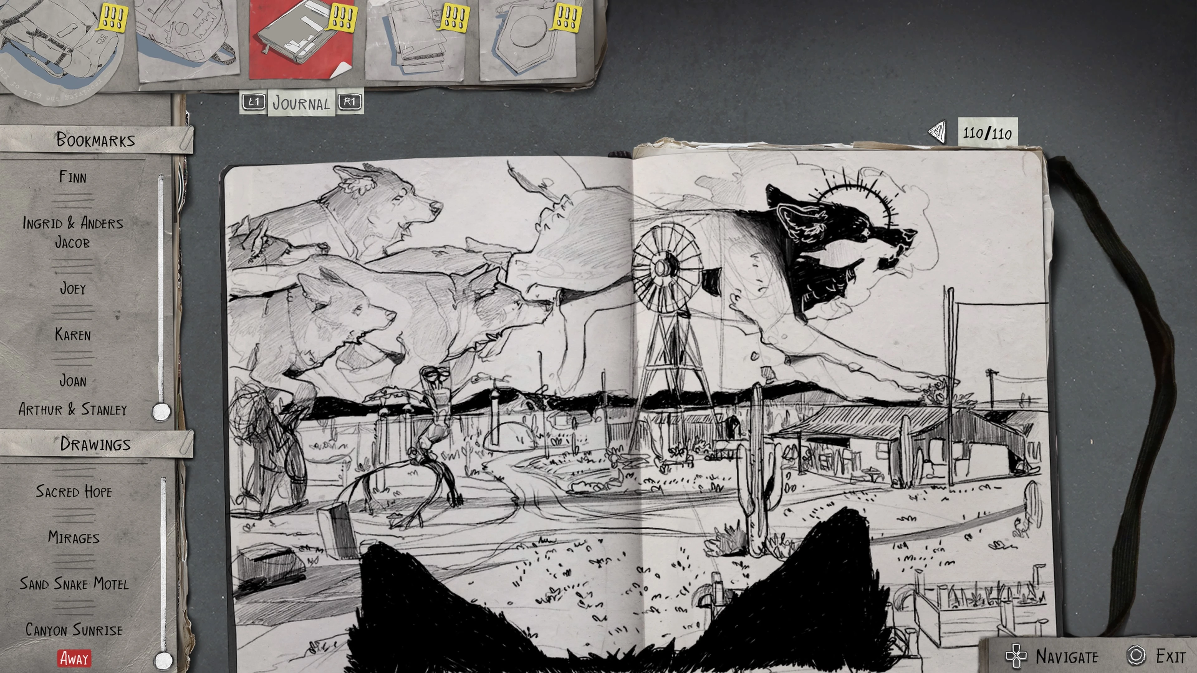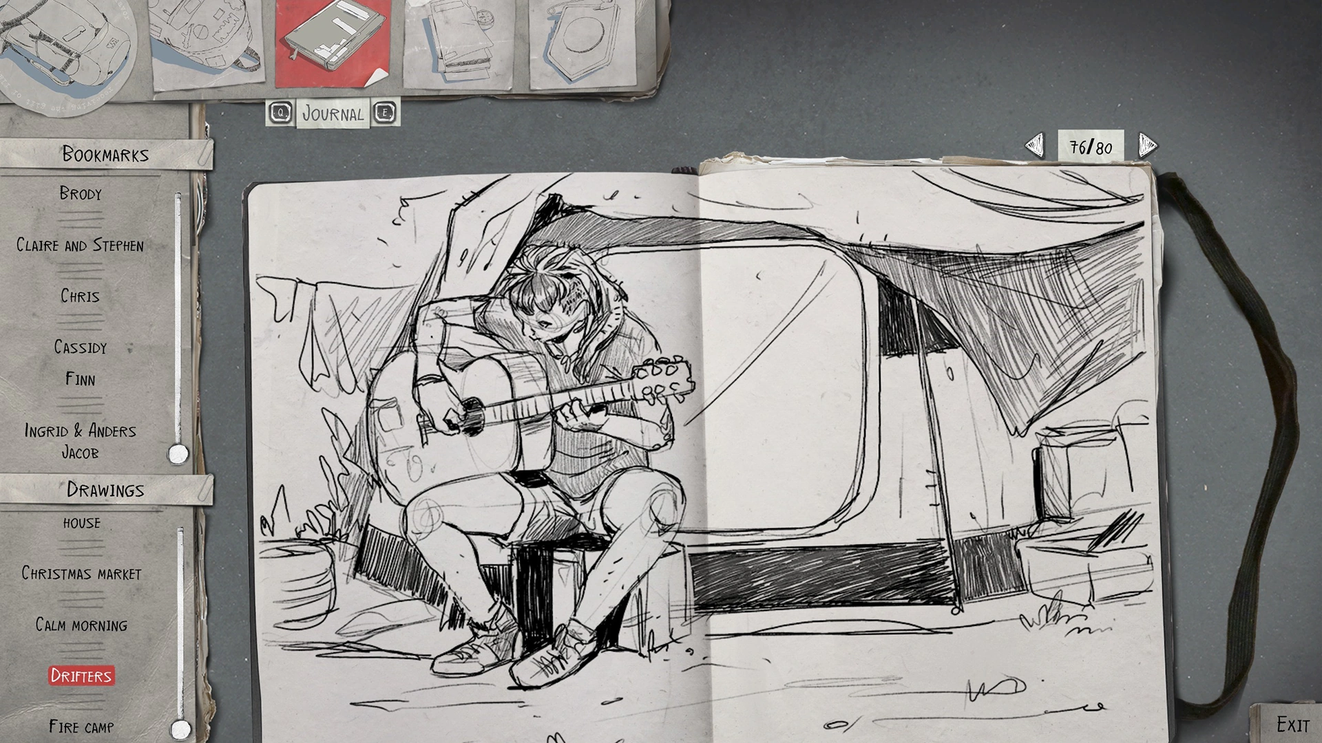 Optional Drawings are a gameplay mechanic in Life is Strange 2. Throughout each episode, Sean may encounter multiple locations where he may sit and draw pictures to varying levels of details using his sketchbook. Completion of a drawing will result in the sketch being saved to Sean's journal pages, and starting any drawing at least once throughout an episode awards the player with an achievement.