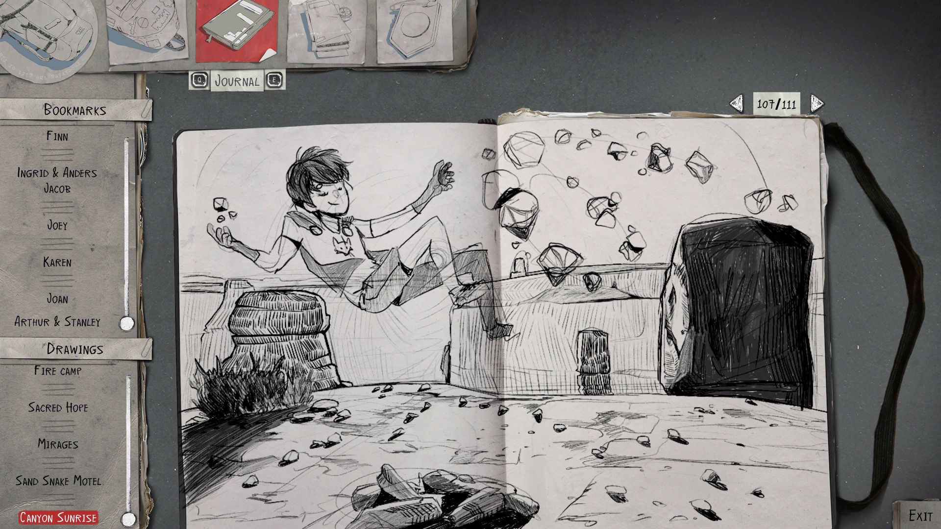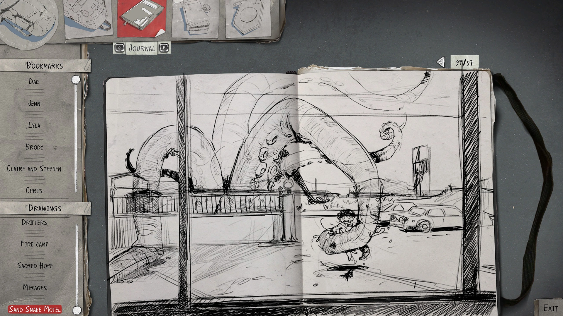 "I should take a good look at the subject before drawing." — Sean Diaz during the first optional drawing in "Roads"
