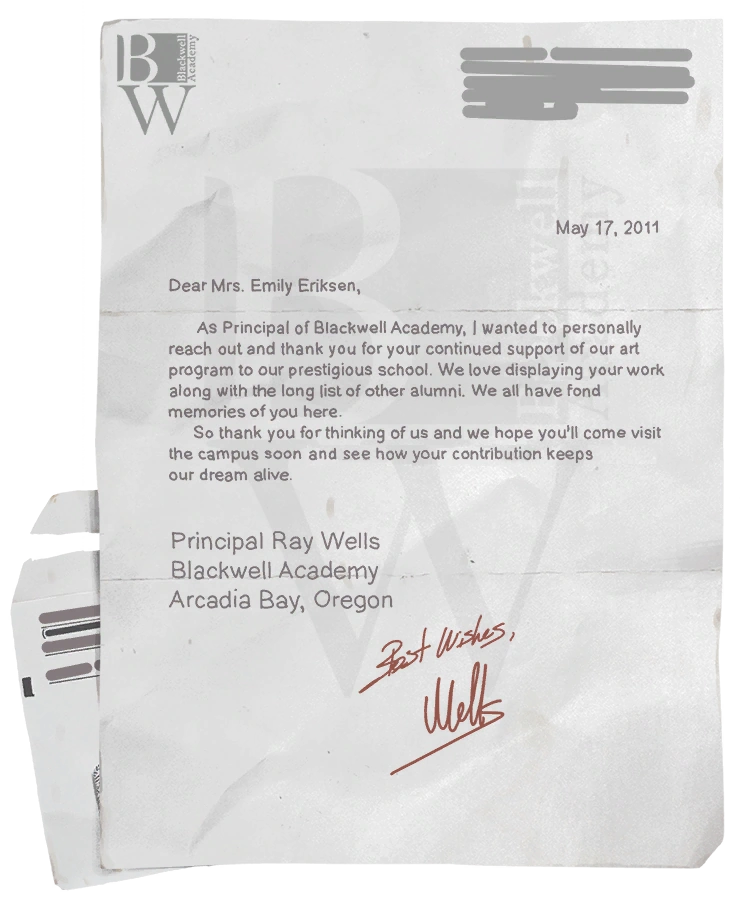 - A letter from Principal Wells shows that Chris Eriksen's mother went to Blackwell Academy.